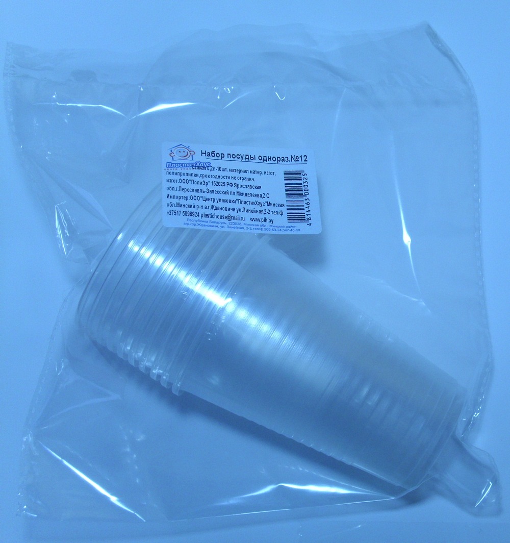 Набор одноразовой посуды №12. Стакан прозрачный 0,2л-10шт.