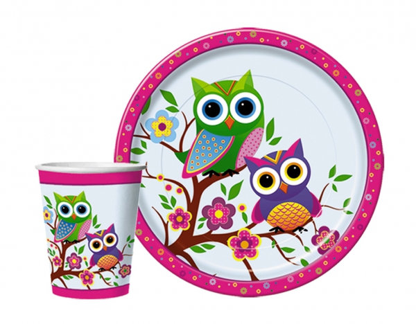 » Комплект одноразовой посуды и салфеток Совы