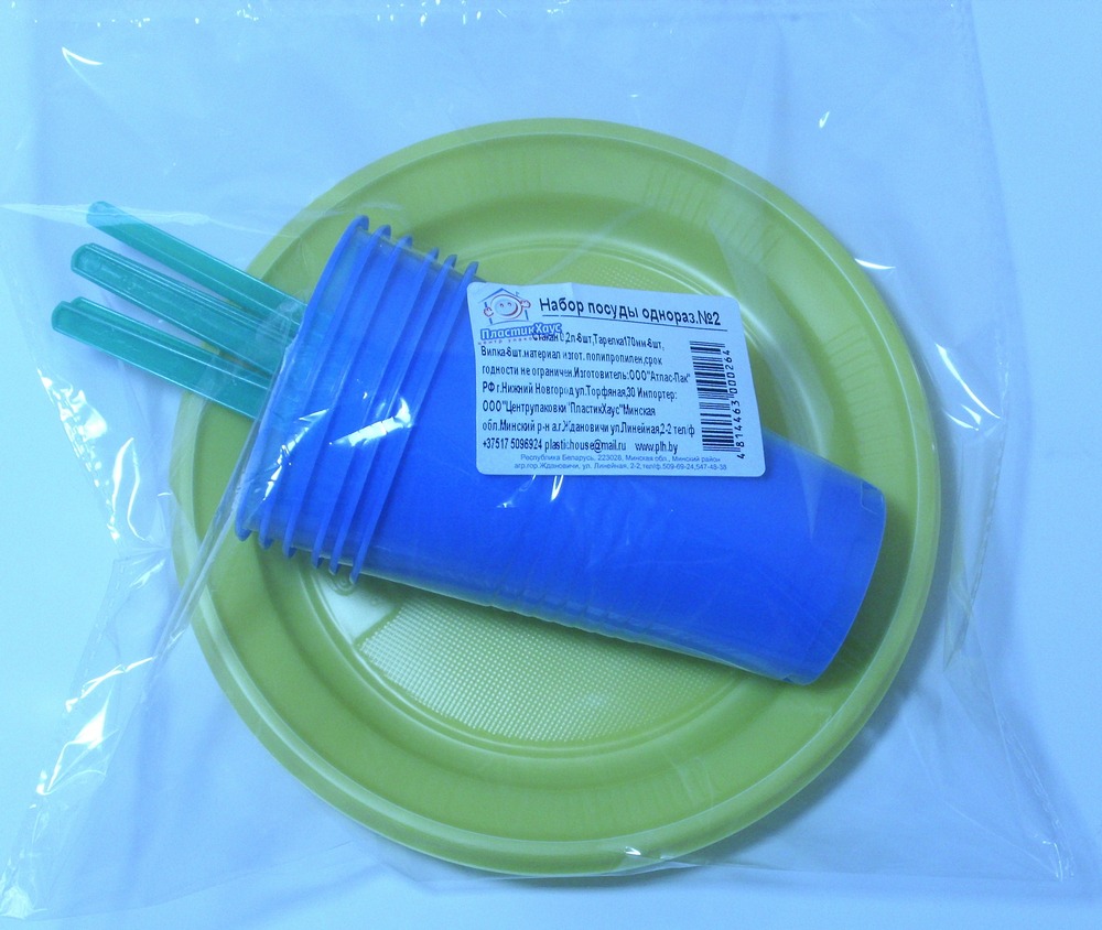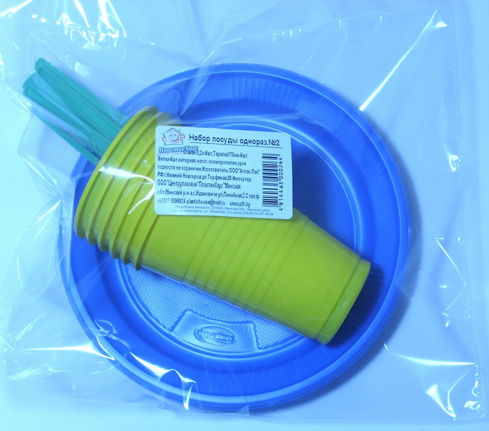 Набор одноразовой посуды №2. Тарелка 170мм-6шт, стакан 0,2л-6шт, вилка-6шт.