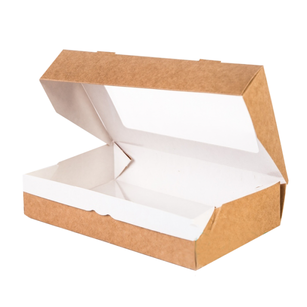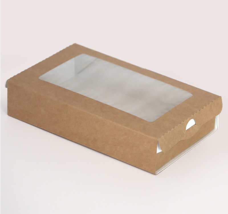 Бумажные контейнеры с прозрачным окном. Различные размеры упаковки. Цвет КРАФТ.