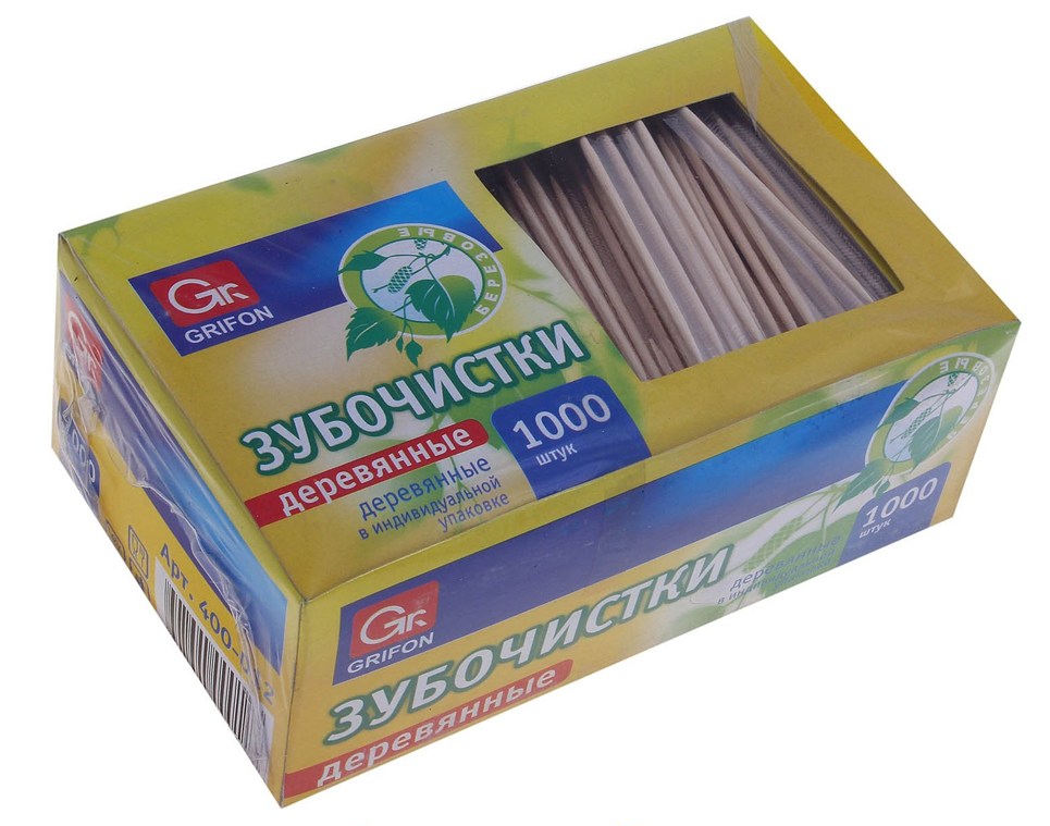 Зубочистки в индивидуальной упаковке по 1000шт в картонной коробочке.