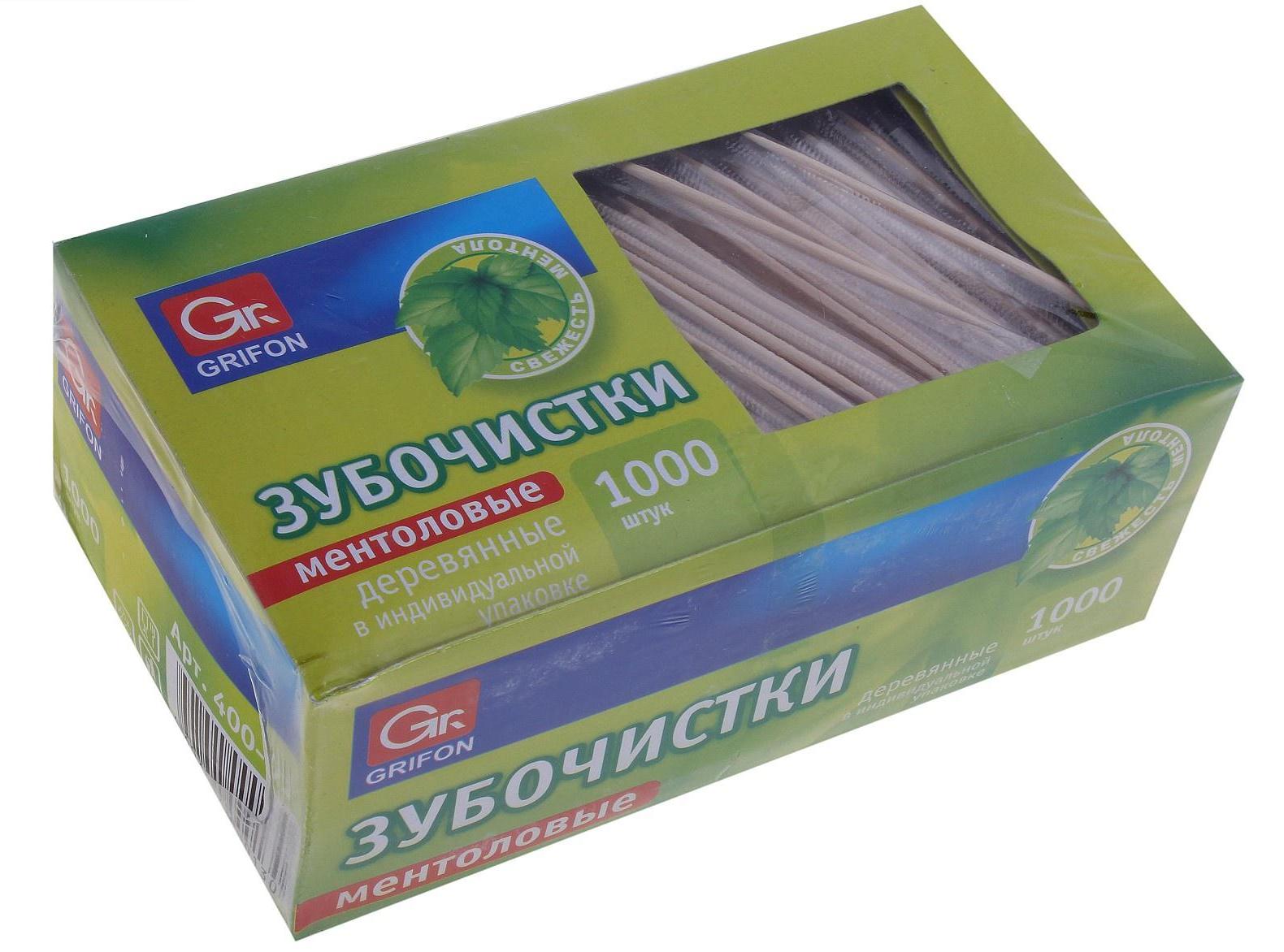 Зубочистки с ментолом в индивидуальной упаковке по 1000шт в картонной коробочке.